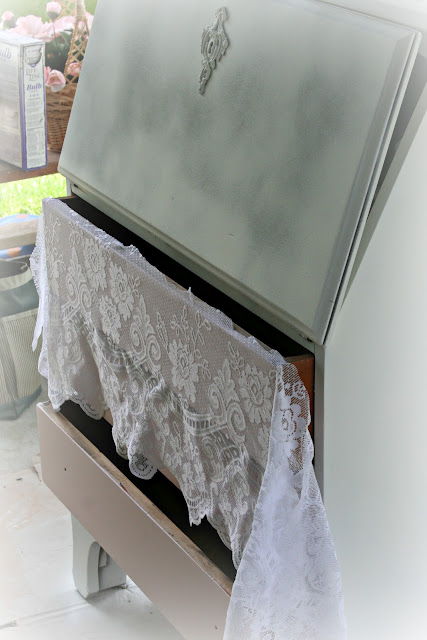 I like the lace technique on the drawers. I put the edge of the lace on the bottom drawer. I have used the lace technique a lot--can never get too much lace!