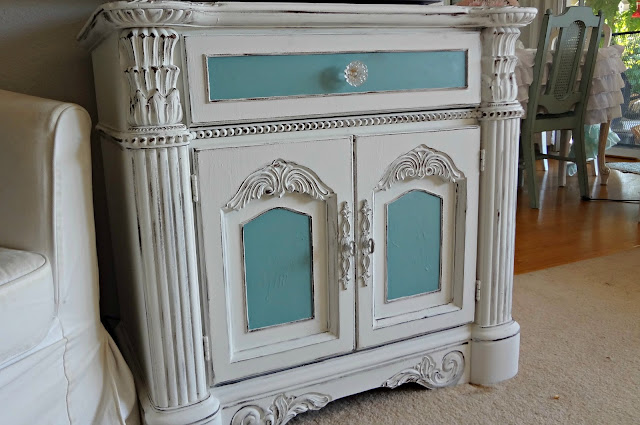 OMGOSH Sandy, your furniture pieces are absolutely gorgeous.... I cannot believe you got the cabinet for 19.99 what a steal. I want one... I also want that little shelf like thingy with the glass door... I've been looking for something like that for a very long time and haven't found anything yet for my bathroom. NOw I'm really in a mess because I want one just like that... it is so adorable. Did you add the details to it?
